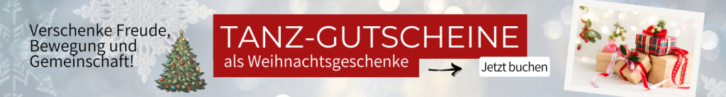 Noch keine Geschenkidee? Unsere Tanz-Gutscheine bringen Freude und Bewegung unter den Weihnachtsbaum. Jetzt mit Weihnachtsrabatt!
