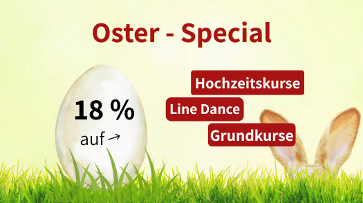 Auf Grund- und Hochzeitskurse so wie auf Line Dance Kurse gibt bis zum 13. April 18% Rabatt. Dieser wird automatisch bei der Buchung des jeweiligen Kurses abgezogen.